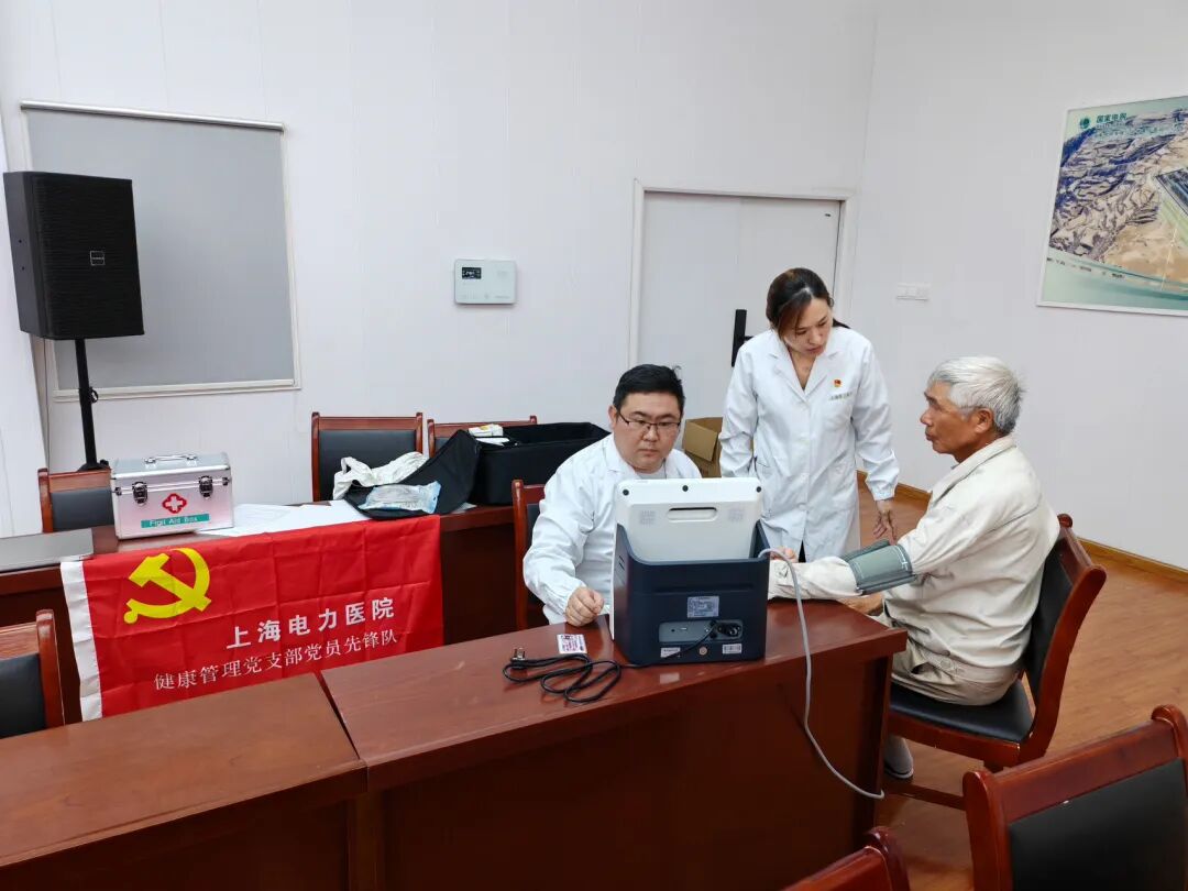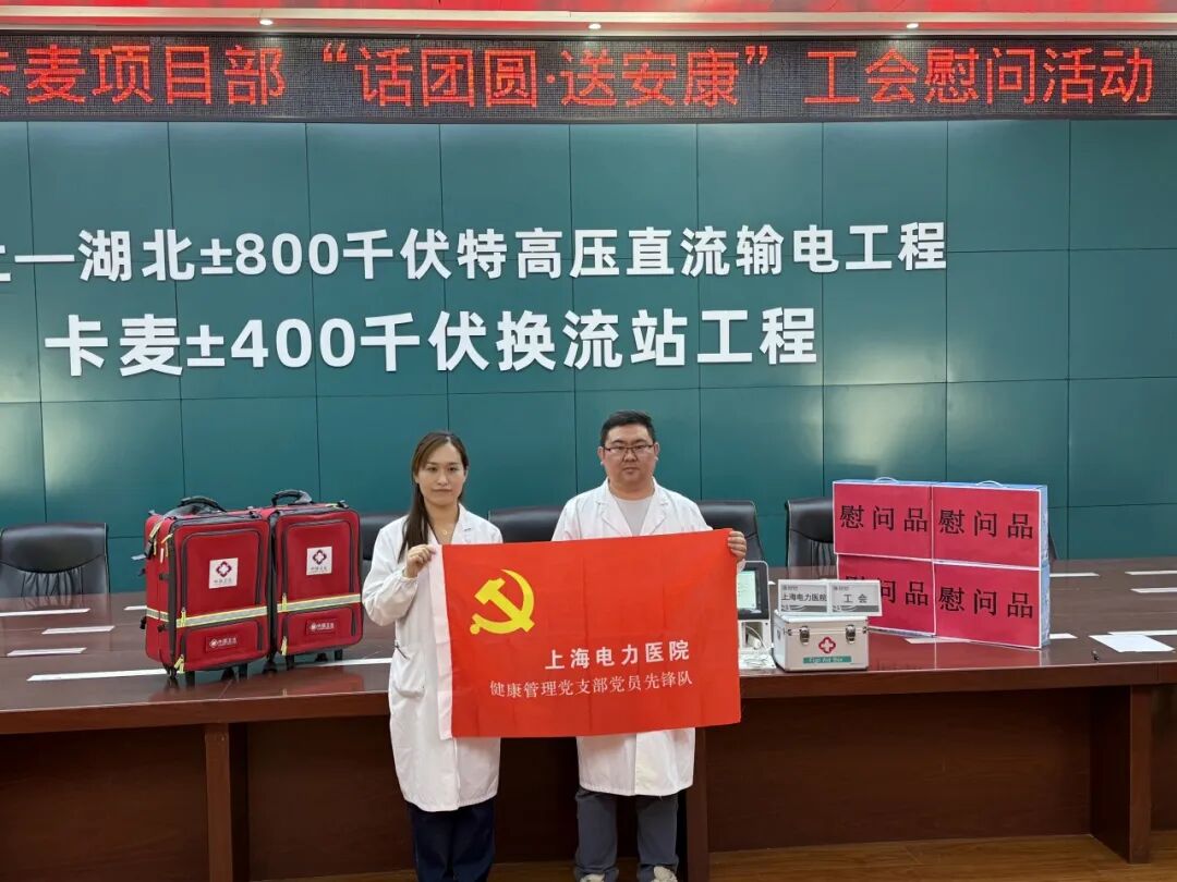在海拔4000米的金沙西岸,华东送变电工程有限公司(以下简称华送公司)卡麦换流站工程的塔基正一寸寸向雪山延伸。8月4日,上海电力医院健康管理党支部党员先锋队随华东送变电工程有限公司慰问组穿越横断山脉,将优质健康服务送进高原施工现场,为奋战在"电力天路"一线的工人们筑起一道健康屏障,用专业与温情践行“客户单位施工到哪里,医疗保障就跟随到哪里”的承诺。