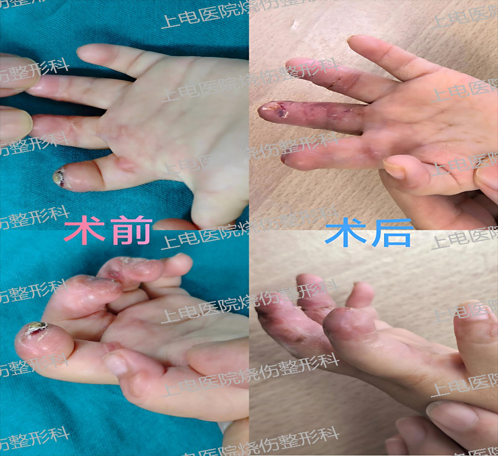 面对这一棘手病例,医院烧伤整形科联合骨科、麻醉科、影像科,为患者量身定制了"最小创伤、最大效果"的矫正方案。手术挑战婴幼儿手术“三重关”:麻醉关—采用精细化麻醉管理,确保未成熟器官安全;手术关—毫米级操作解除疤痕挛缩,重建手指功能;护理关—24小时专业监护平稳度过危险期。