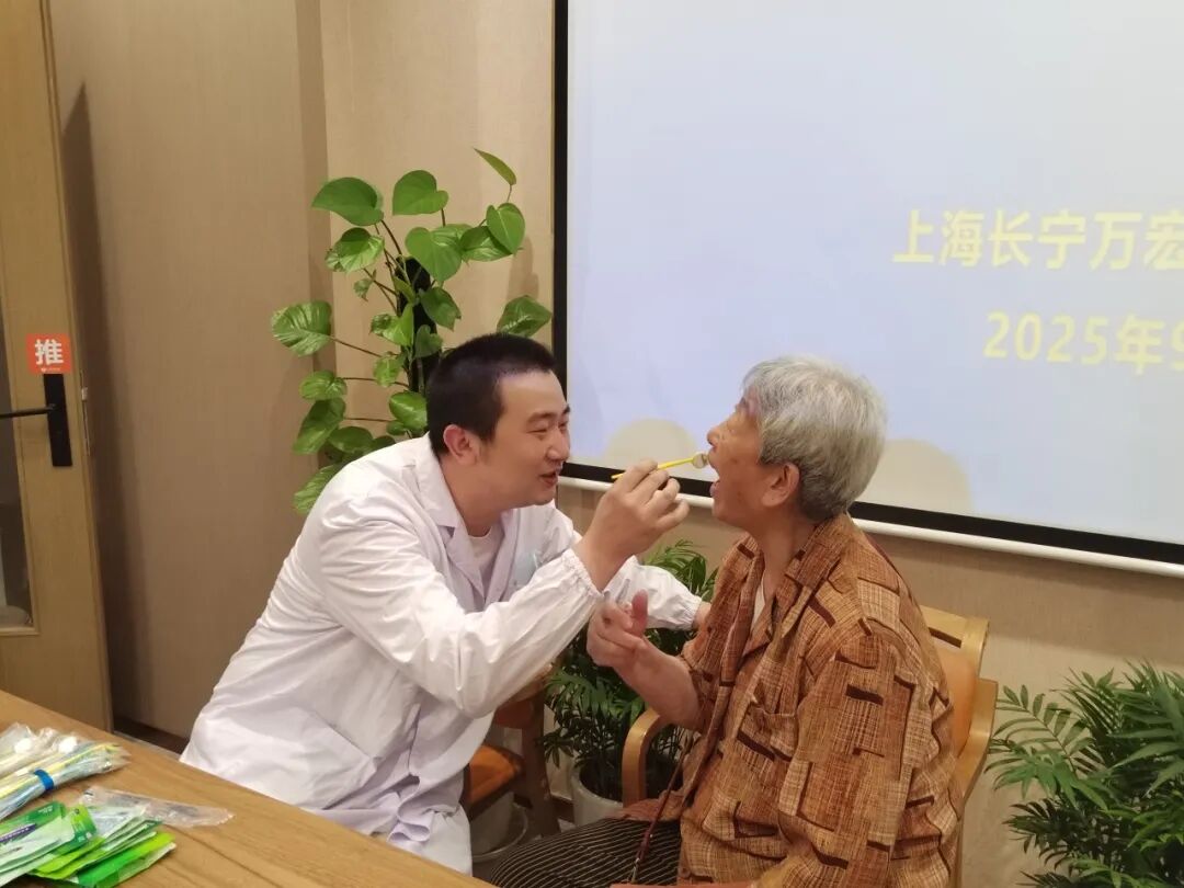 活动中,口腔科马嘉磊医生通过图文并茂的展示和通俗易懂的讲解,系统介绍了牙周疾病防治、牙齿缺失的危害与修复方式、日常口腔保健要点等实用知识,让老人在轻松愉快的氛围中掌握口腔健康保健技能。 讲座结束后,医疗团队开展了面对面的健康咨询服务。马嘉磊、王聪洋两位医生耐心细致地为每位老人检查口腔状况,解答各类口腔健康问题,并提供个性化的治疗建议和保健方案。 此次活动通过党支部主动牵头,业务科室精准对接,将优质医疗资源下沉至养老机构,有效提升了为老服务的专业性和可及性,是党建引领业务发展的生动实践。